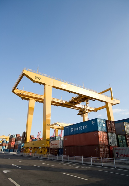 (1)布置在集装箱堆场的轨道上,核心完成堆场内集装箱的堆垛、转运和装车作业,跨距大,可覆盖多列集装箱堆垛,作业效率高,适合堆场规模化、集约化作业。