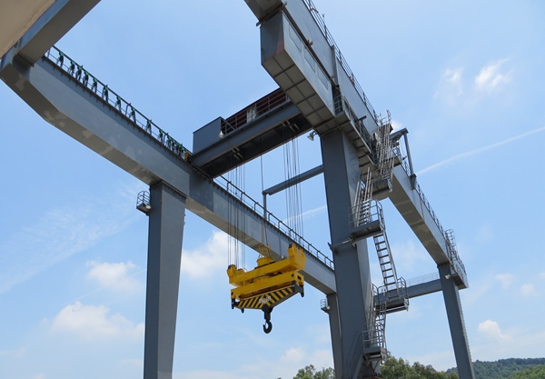 (2)轮胎式集装箱龙门吊(RTG):不用铺轨道,可自由移动,前期成本低、安装快,适合场地不规则、需要跨区域作业的小型或临时堆场。